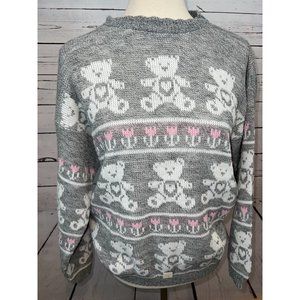 NWT Adele Knitwear Sweater Large Teddy Bears Heart Acrylic USA 80s Vintage Gray