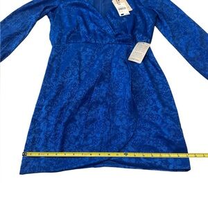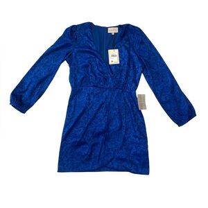 NWT Adelyn Rae Blue Longsleeve Dress Floral Pattern V-Neck Medium