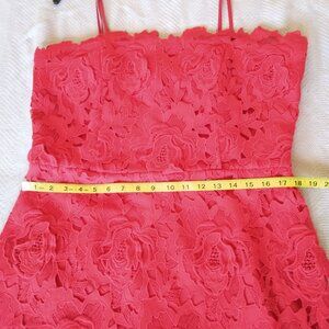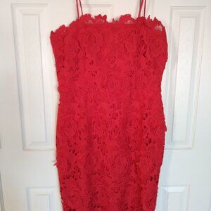 NEW WITH TAG. Adelyn Rae Jade Strapless Woven Lace Dress ONLY $79 RETAIL $158 in Red Size XL. Lacy blooms texture dress designed with a sweetly scalloped hemline and a shoulder-showcasing silhouette.