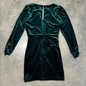 New with tags Adelyn Rae emerald green velvet wrap dress with plunging neckline and keyhole back.