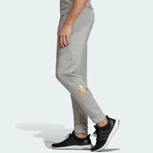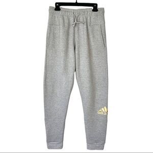 NWT Adidas Fleece-Lined Grey Gold Logo Sweatpants