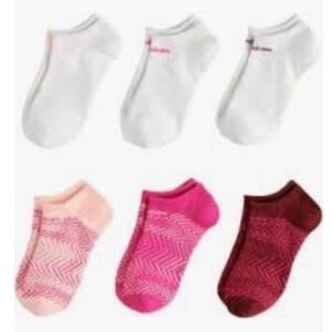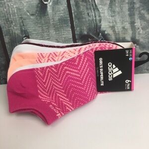 NWT adidas Girls no-show socks. 6-pair pack of superlite, moisture-wicking, extra arch support socks. 3 white, 1 pink, 1 burgundy, 1 peach. Bundle and save.