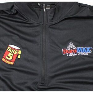 This Adidas Golf pullover sweatshirt combines style and functionality. It features unique logos of Drydene, Duramax, and Take 5 Oil Change, adding a distinct character to this classic black design. Crafted for comfort and durability, it suits various informal settings and offers a professional appearance.