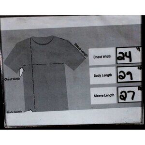 Chest width = 24 inches, body length = 29 inches, sleeve length = 27 inches