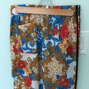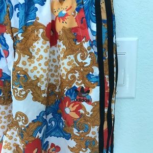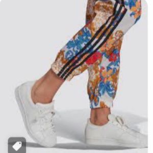 Beautiful Multi color floral design with 2 side pockets and one back pocket. Signature triple stripes down the legs. Elastic ankles. Can be dressed up or down. Fun print to spice up your look! Original price $70