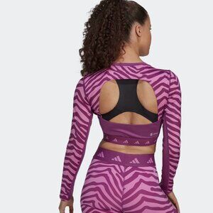 NWT Adidas HYPERGLAM TECHFIT CROP LONG SLEEVE ZEBRA TEE Medium