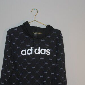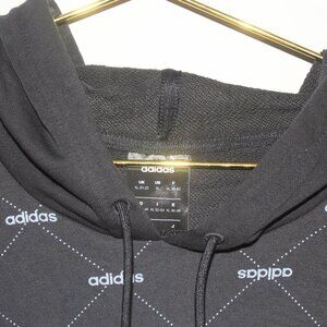 NWT Adidas Hooded Sweatshirt Women XL Black White Allover Spellout Print Hoodie