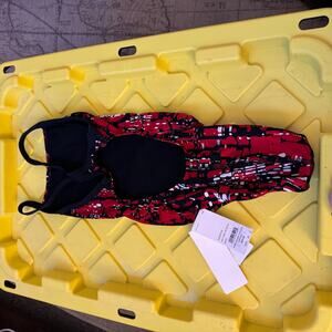 NWT Adidas Infinitex Amoeba Blocks Vortex Back Swimsuit One Piece Womens Size 24
