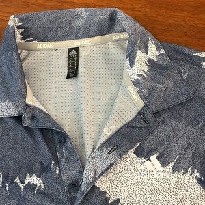 New with tags! Mens Adidas Patterned Golf Polo in Shades of Blue and size Small. Retails for $65!