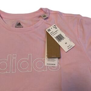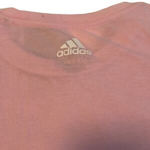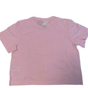 New with tags! Light pink cropped top by Adidas. Box style, shortsleeve, super cute! White lettering. Last pic shows fit worn. Pretty pink. Size medium