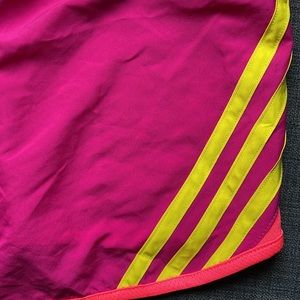 NWT Adidas curve shorts, size medium, blast pink / red zest. New with tags. No flaws or stains. Unlined