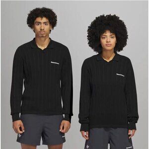 Activewear Polo Collared Knit Long Sleeve Black Casual Classic NWT Athletic Athleisure Casual Loungewear Embroidered Unisex Neutral Relaxed Fit Minimalist Contemporary White Graphic