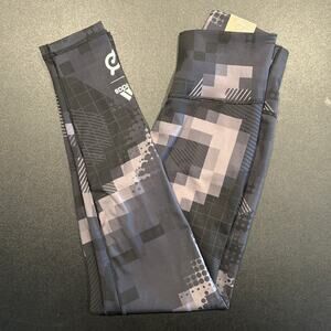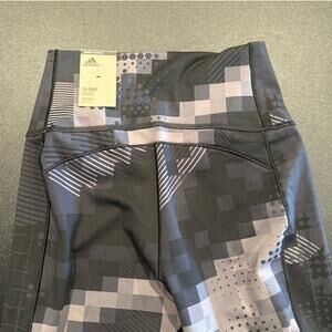 NWT Adidas x Peloton Geometric/Pixel Print 7/8 Leggings, Gray/White, Women’s S