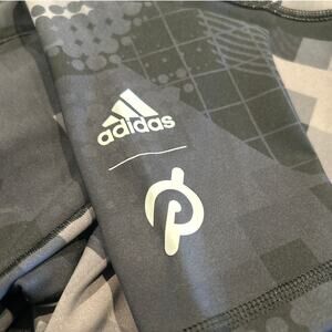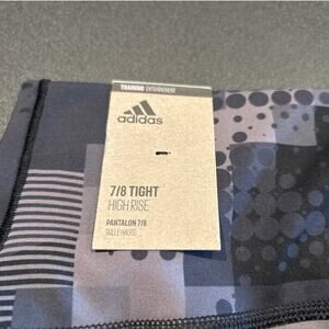 Keywords: Adidas Peloton leggings, women’s workout tights, recycled polyester leggings, athletic leggings, gym wear, 7/8 leggings, black gray print tights, NWT Peloton apparel