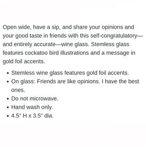 🦜🦜🦜NWT Adorable Stemless Wine Glass🦜🦜🦜