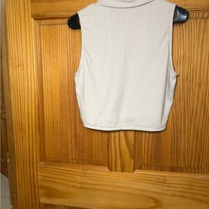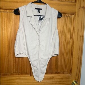 NWT Adorable forever 21 sleeveless collared Button down summer beige linen crop