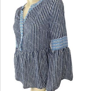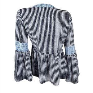 NWT Adorable Blue/Black/White Blouse with Bell Sleeves from DuJour Size Small