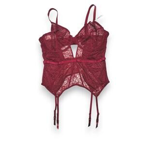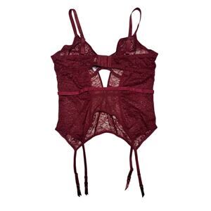 NWT Adore Me Burgundy Lace Bustier Corset With Garters Size 38DDD