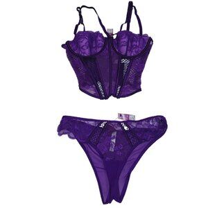 NWT: Adore Me Dominika Purple Lined Corset 2-Piece/Two-Piece Set: Corset & Panty