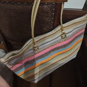 Perfect carryall with bonus wallet with gold wrist strap. Multicolor with white lined inside and handy pocket. NEW