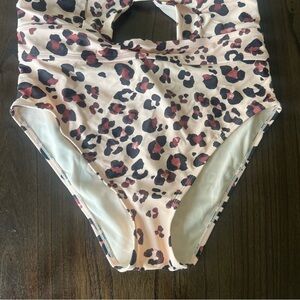 Adore Me one piece swimsuit with bold leopard print. Features stylish buckle detail.
