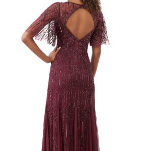 NWT Adrianna Papell 40395 Beaded Mesh Formal Gown Rose Gold Size 8