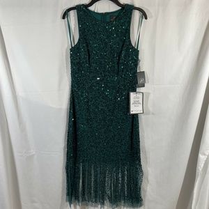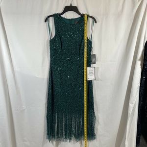 NWT Adrianna Papell [ 8 ] Beaded Short Dress in Dark Jade Green