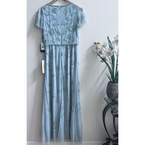 NWT Adrianna Papell Aqua Dust Short Sleeve Blouson Beaded Mixi Gown Women's 0