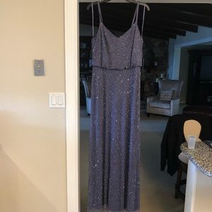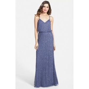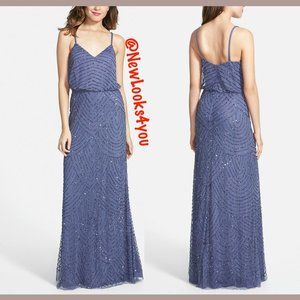 NWT Adrianna Papell Art Deco Beaded Blouson Gown in Dark Heather [SZ 2 12 ]