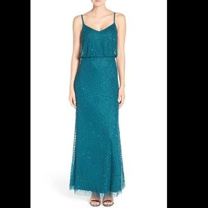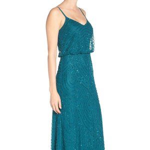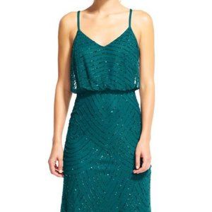 NWT Adrianna Papell Art Deco Beaded Blouson Gown in Hunter [PETITE SZ 16P ]