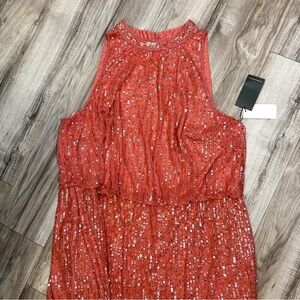 NWT Adrianna Papell Beaded Blouson Halter Dress - Sugar Poppy
