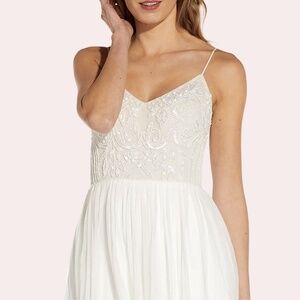 NWT Adrianna Papell Beaded Bodice Tulle Skirt Full Length Gown in White Sz. 10