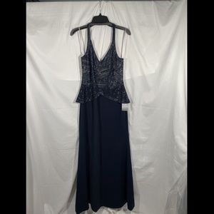 NWT Adrianna‎ Papell Beaded Halter Gown in Midnight Blue [SZ 6 ]