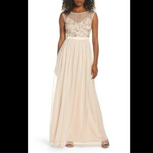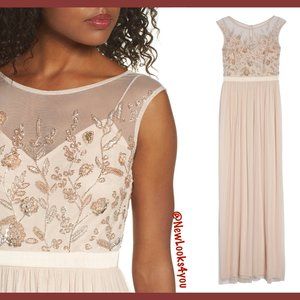 NWT $249 Adrianna Papell Beaded Sleeveless Mesh Gown in Shell [ SZ 8 ] #G191