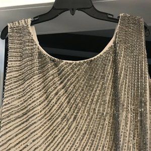 NWT Adrianna Papellโ Beaded Wrap High/Low Dress in Platinum [PLUS SZ 22W ]