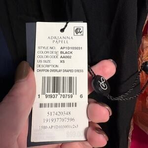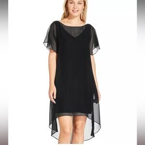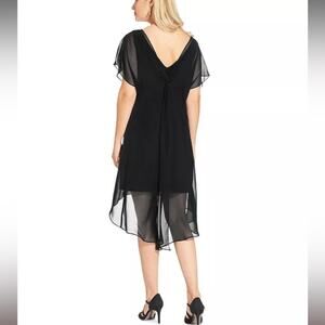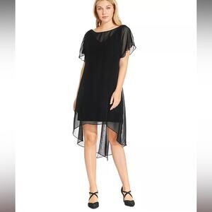 NWT Adrianna Papell Black Chiffon Flutter Sleeve A-Line Dress XS
