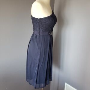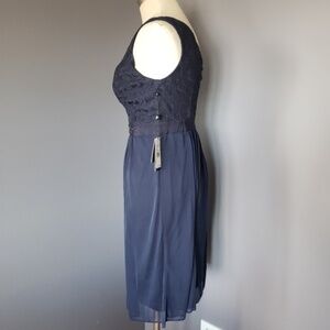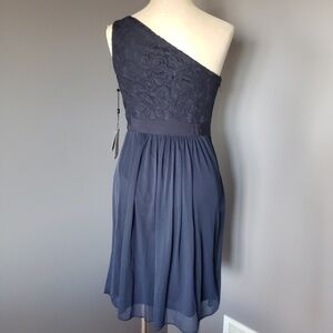 NWT Adrianna Papell One Shoulder Stretch Tule Lace Dress with Embellished sash on the waistband