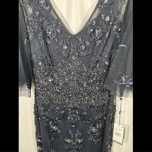 NWT Adrianna Papell Floral Beaded Flutter Gown 0