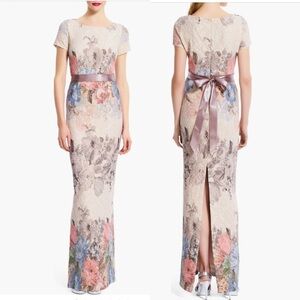 NWT Adrianna Papell Floral Matelassé Column Gown 12