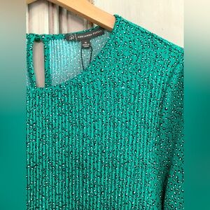 NWT Adrianna Papell Green Pleated Trapeze Top Sz M