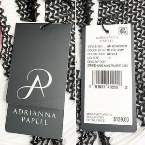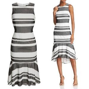 NWT Adrianna Papell Kang Kang Striped Trumpet Midi Dress Black & White Size 14