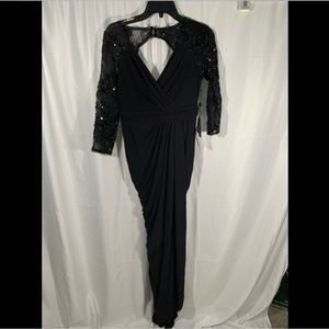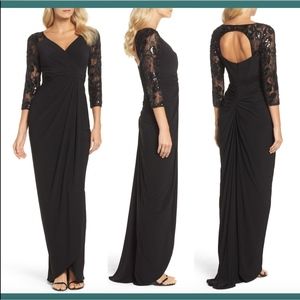 NWT Adrianna Papell Lace Sleeve Gathered Gown in Black [SZ 6 ] #E671