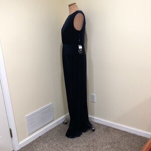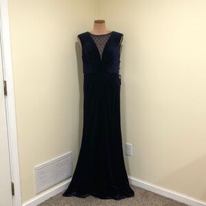 NWT Adrianna Papell Maxi Dress 12 Midnight Navy Blue Velvet Beaded Mermaid Gown