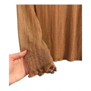 NWT Adrianna Papell Metallic Smocked Neck Knit Top in GoldRust / Size Small