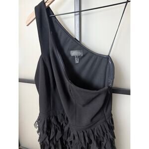 NWT Adrianna Papell One Shoulder Fringe Skirt Midi Cocktail Dress Size 12