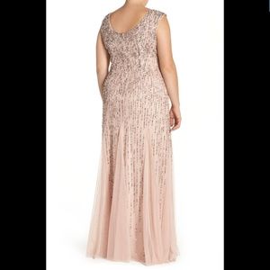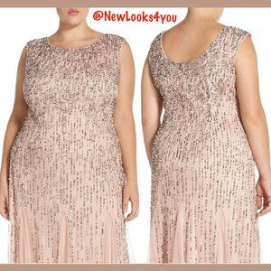 NWT Adrianna Papell Pearl Beaded A-Line Godet Gown in Blush [PLUS 14W ]