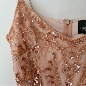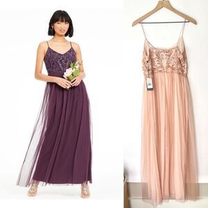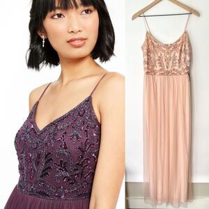 NWT Adrianna Papell Sheer Toole Zippered Strap Scoop Maxi Fit Flare Dres…