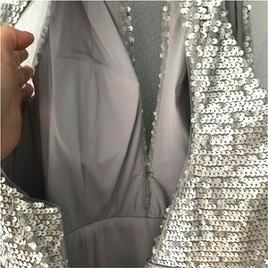 NWT Adrianna Papell Silver Sequin Paillette Gown 4