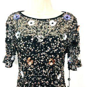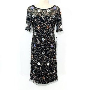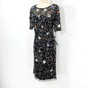 NWT Adrianna Papell Sz 4 Midnight Hand Beaded Mesh Sheath Dress Lined Zipper