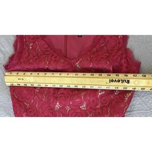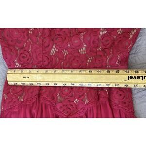 NWT Adrianna Papell Sz 8 Chiffon Lace Overlay Fit N Flare Dk Pink Zip Drop Waist. Measurements shown in photos.